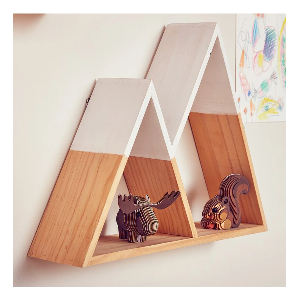 Étagère murale en forme de montagne, en bois (pin) peint en blanc. Cette étagère sera très jolie dans la chambre de votre bébé.