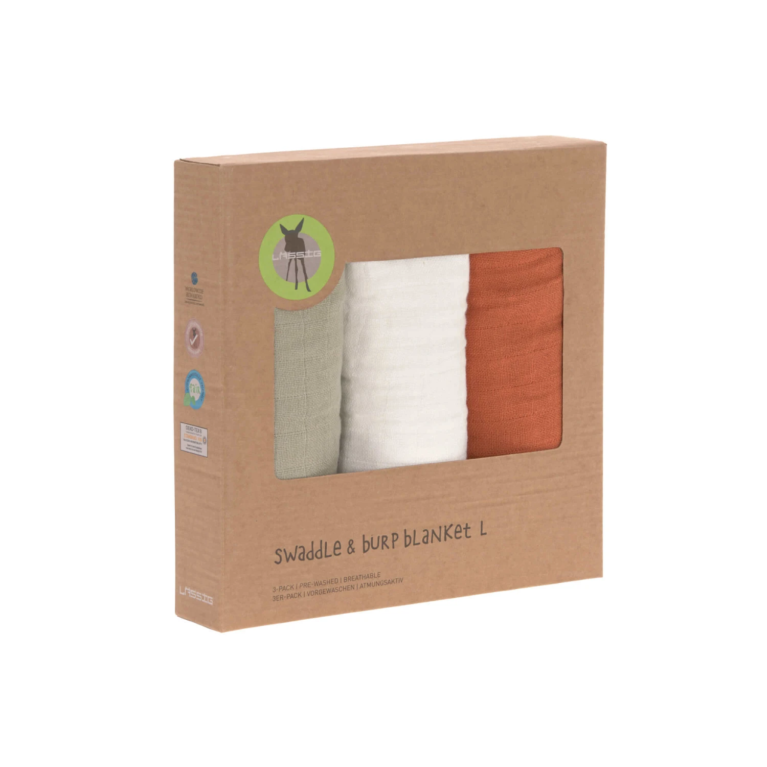 Le lange multifonction de LÄSSIG est fait à partir d’un coton (100 %) prélavé, respirant et facile d’entretien.