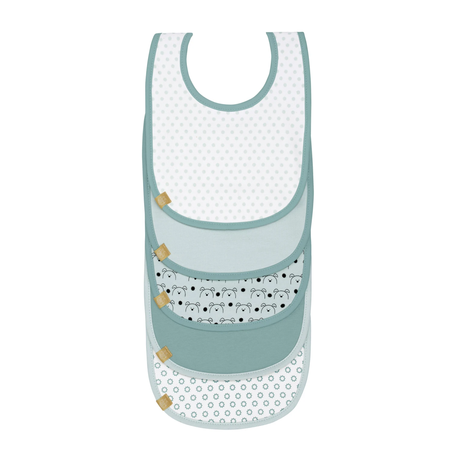 Avec les lots pratiques de 5 bavoirs de LÄSSIG, ce n´ets pas grave si les petits gourmands ne mangent pas proprement, même plusieurs fois de suite. Les bavoirs sont munis d´une fermetrure Velcro à l´arrière et sont disponibles en différents coloris, unis ou avec motifs.
