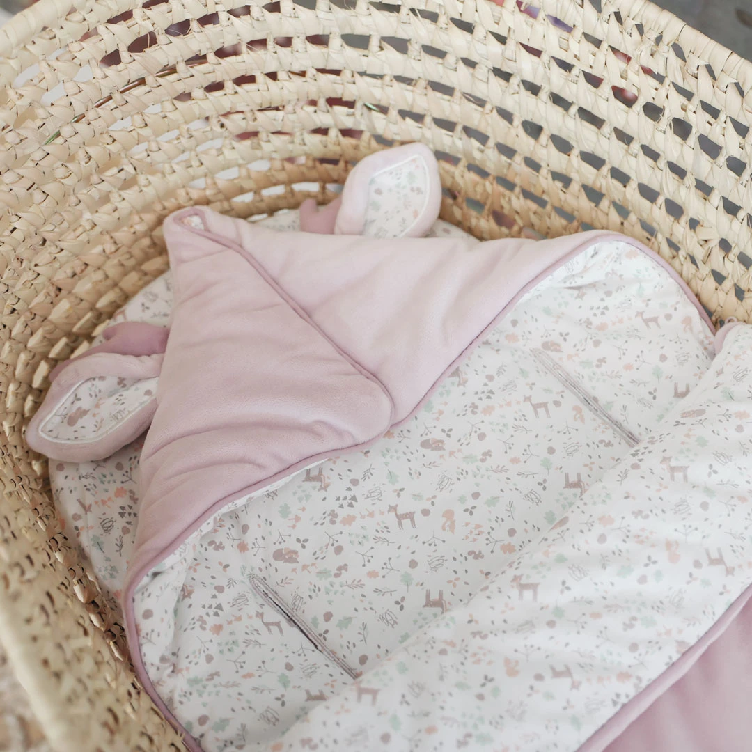 Le nid d’ange Lilas et ses oreilles de faon est conçu en jersey pur coton pour le plus grand confort de bébé. Rembourré de ouate et agrémenté d’un tissu extérieur velours, il est parfait pour garder bébé bien au chaud.