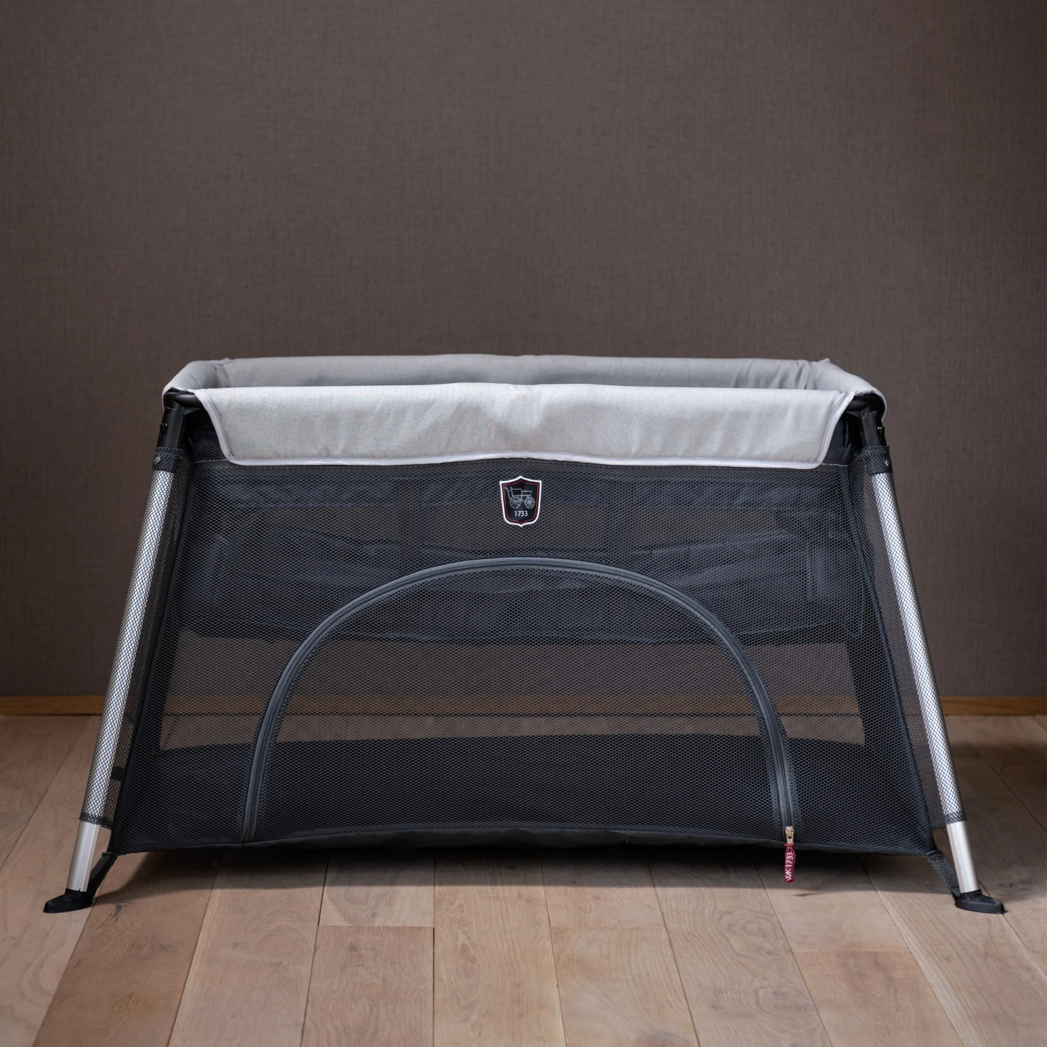 La structure en aluminium du lit, ultra-légère, son sac de rangement pour le transport et le stockage faciliteront les déplacements des parents.