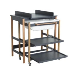 Très pratique, en un seul meuble la table à langer, la baignoire et des rangements.